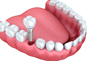 Dental implants can be used to anchor full dentures and provide a more secure and stable fit for denture wearers. A few dental implants are strategically placed into your jawbone and the denture is designed to “snap” into place. Implants prevent the chance of any movement or slippage when you talk or eat.